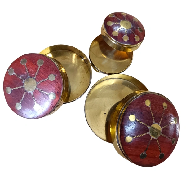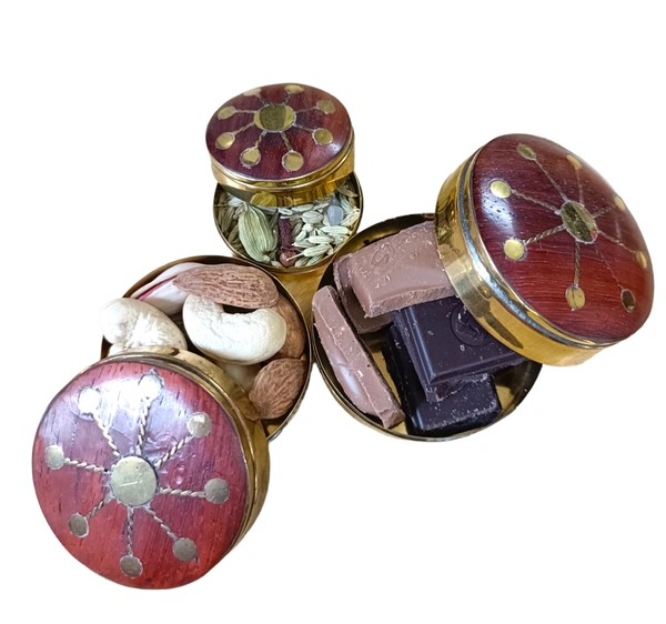 100% pure brass set of 3 dabbis / Multipurpose stoage box / Antique product / Wooden top