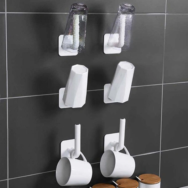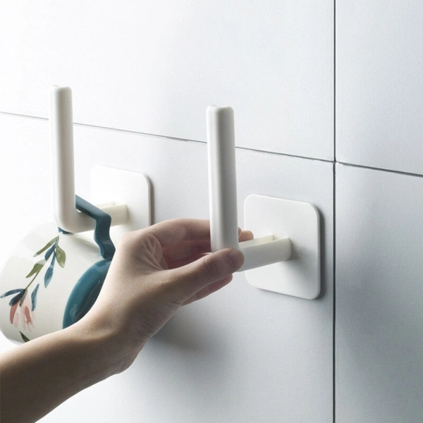 Adhesive Sticker Multi-Purpose Hook Towel Hanger for Kitchen Bathroom | Toilet Roll Hanger | Kitchen Roll Hanger Adhesive Sticker ABS Plastic Hook(Pack of 2)