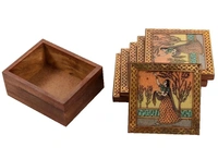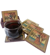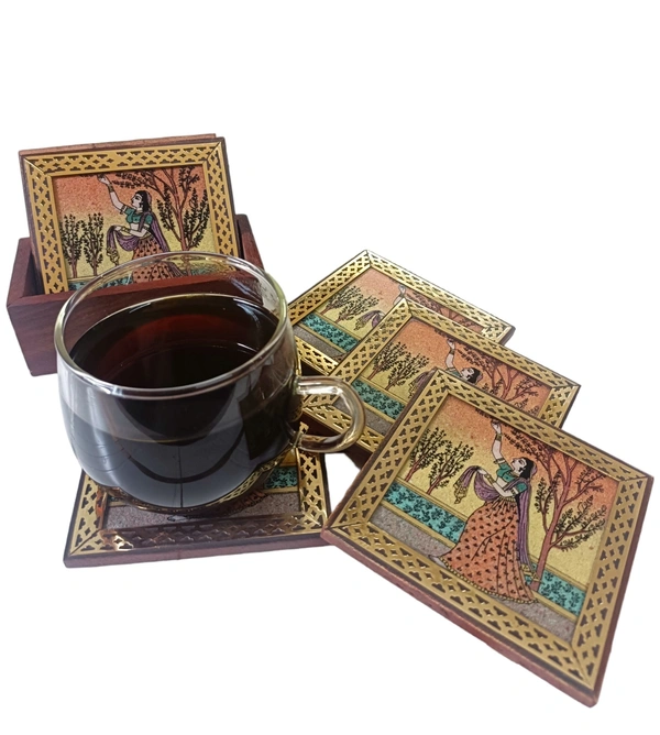Brown Square Wooden Tea Coaster with Gemstone painting