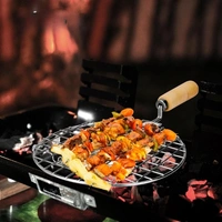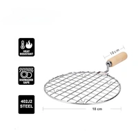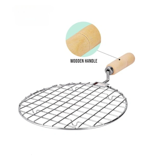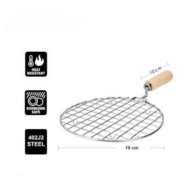 JP Pizza Grill Round Papad Jali Stainless Steel Roaster, Brinjal Roaster, Barbeque Jali Roaster Chapati Toast Grill Wooden Handle (Papad Jali Round Size 1 Small)