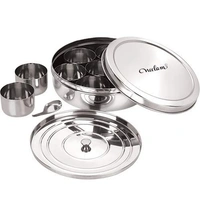 - Package Contents: 1 Masala Dabba with Lid + 7 Containers + 1 Spoon and 1 Steel Plate.