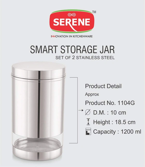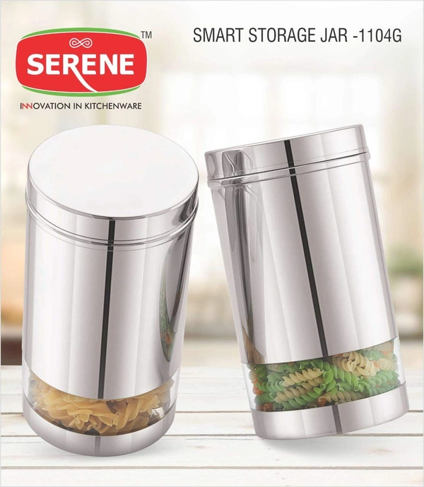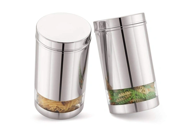 Serene Smart Stainless Steel See Through / Transparent Container Jar, Set of 2, 1200 ML, Glossy Finish.