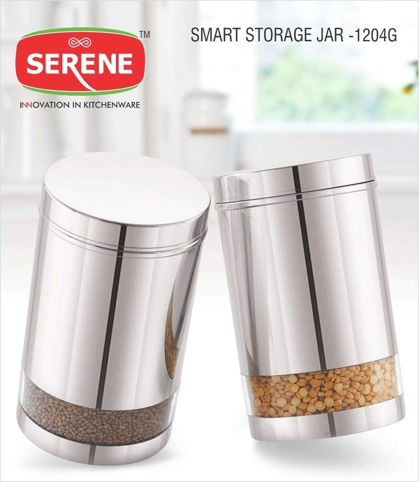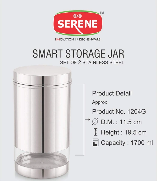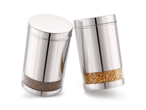 Serene Smart Stainless Steel See Through / Transparent Container Jar, Set of 2, 1700 ML, Glossy Finish.