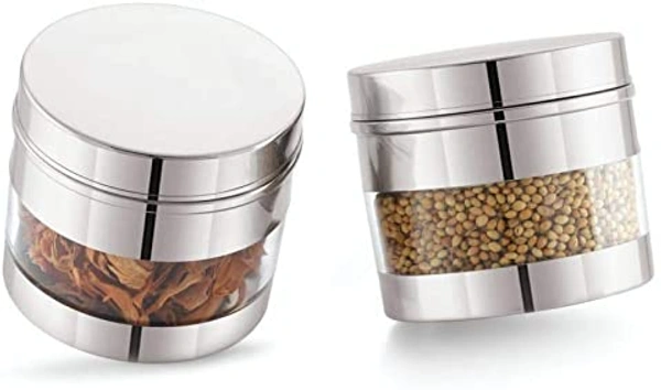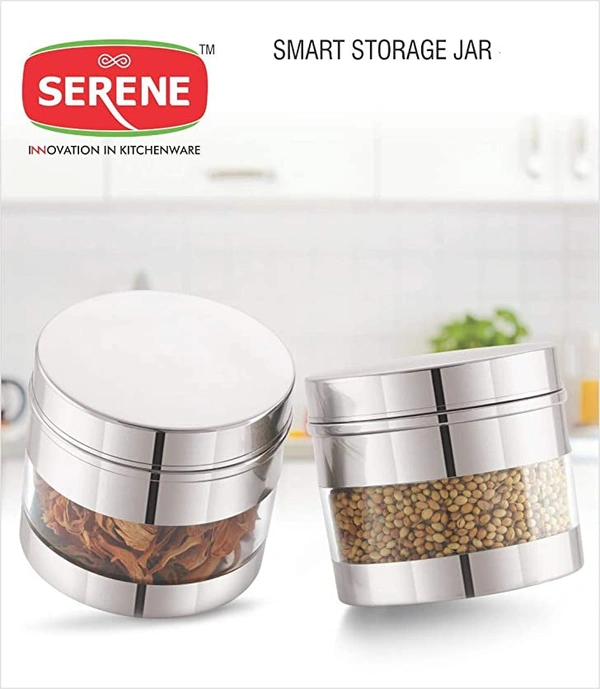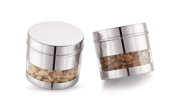 Serene Smart Stainless Steel See Through / Transparent Container Jar, Set of 2, 350 ML, Glossy Finish.