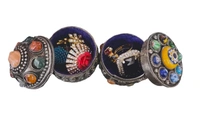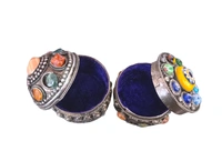 Set Of 2 Pure Brass Round Storage Box With Colorful Stones metallic coating