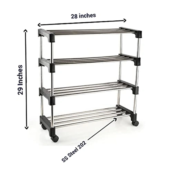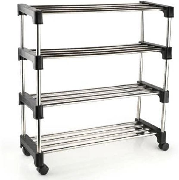 Stainless Steel Multipurpose Shoe Rack | Multiutility Stand | Cloth Stand | with 4 Rotating Castor Wheels (Colour may vary as par availability)